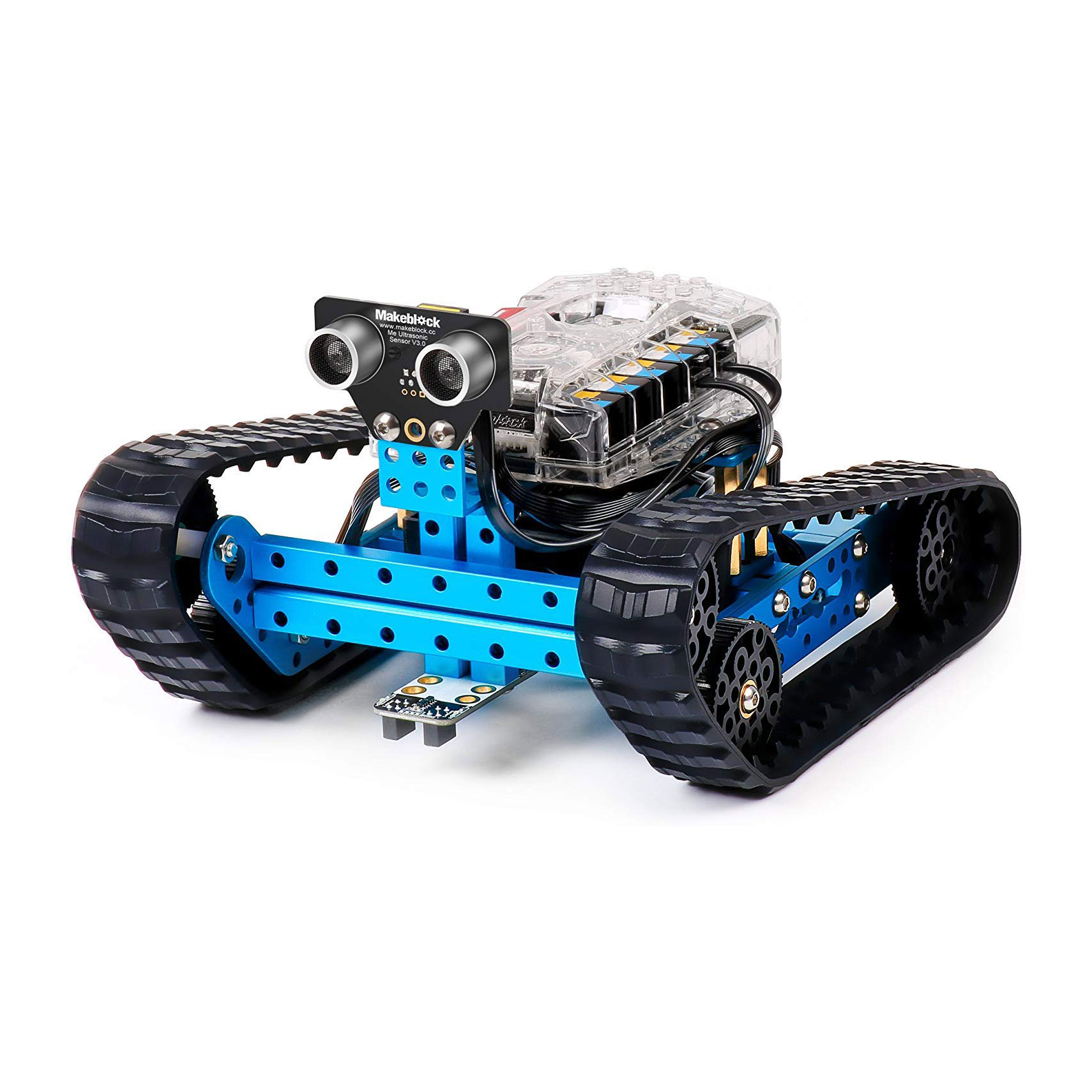 The MakeBlock Ranger is a three-in-one, bluetooth connected robotics platform that comes complete with everything you need to assemble and code it on day-one. In it’s default configuration it looks exactly like a tank, and can traverse around most environments easily. You can reassemble it in different ways (3 guided experiences, but you can get creative). The 3 configurations are pictured above:
